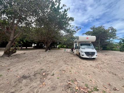 Lovely campsite, managed by a brasilian couple. A lot of space for campers and tents, a lot of trees which give a nice shadow, hammocks everywhere, a kitchen and barbecue place to use. We payed 20 Reales per Person. The campground is 10min walking distance to the beach.