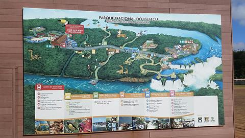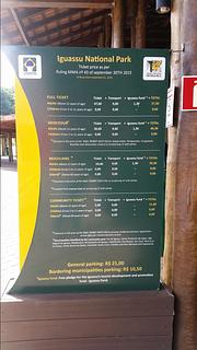 To see the falls from this side, enter the park here and go into the parking lot. You'll get a time slip when you enter.Hours are 9am to 5pmWalk to the ticket booths. There are automatic kiosks, and also staffed windows.Ticket for foreigners is R$117, including an optional R$3 donation. Parking costs R$55 for all vehicles, including motos. You have to pay that before you leave at a separate kiosk.When you buy your ticket, you choose an entry time. At the appropriate time, you'll get in line to board a bus for a 20-minute ride to the falls.There is a trail which offers numerous views of the falls. At several spots drinks and snacks are available.At the end of the trail, there is a restaurant, bathrooms, gift shop. From here you take a bus to return to the parking area. Don't forget to pay for your parking before you leave.