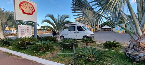 We filled up and asked to stay overnight at the gas station. The station closes from 10 pm to 6 am, quiet night. There are bathrooms and water but we didn't use it. ..... Abastecemos e pedimos para pernoitar no posto. O posto fecha das 22h às 6h, noite tranquila. Tem banheiros e água mas não utilizamos.