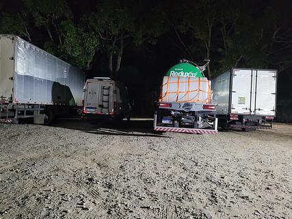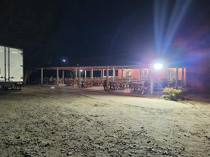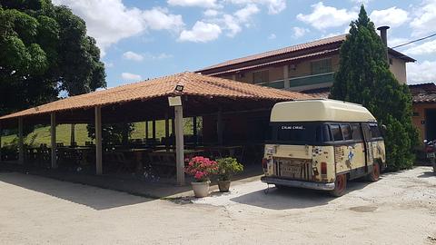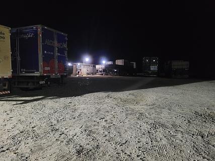 Large parking area in front of the steakhouse, where truckers stop. They do not charge for using the bathroom (it has a hot shower). There is no night watchman, but we felt quite safe.Grande área de estacionamento em frente à churrascaria, ponto de parada de caminhoneiros. Não cobram para utilização de banheiros (tem chuveiro quente). Não há vigia noturno, mas nos sentimos bastante seguros.