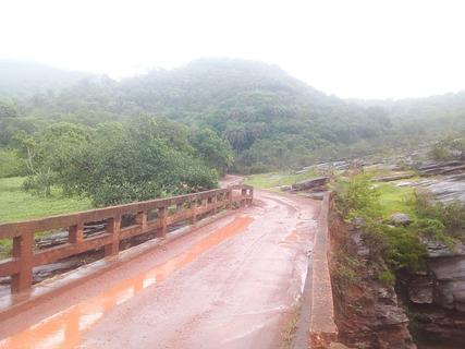 Sheltered and screened from the road camp beside a running creek. This site is only accessible for motorbikes and small rigs. Big rigs could camp about 100 meters west beside the bridge however wouldn't be screened. Quiet stretch of road at night. Perfect overnight wild camp after riding the dusty Estrada Real back roads from the south today.
