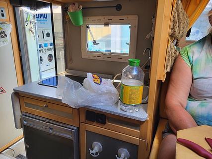 Laundromat 60 Real for washing plus drying we were able to park right in front in the shade.Laverie 60 Real pour lavage plus séchage on a pu se garer juste devant à l'ombre.