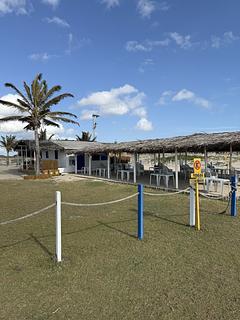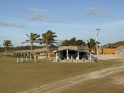 We parked just beyond the kite beach restaurant. Spent 2 nights here no charge. We asked permission to use the toilet & shower which are very clean. Great flat water kite spot, excellent for beginners. Not deep. Constant wind but no flying sand.