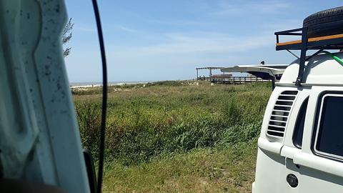 De frente para o mar, banheiro químicos e chuveiros públicos. Ficamos duas noites, local muito tranquilo e quieto, cidade pequena e aconchegante.