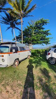 Gramado de frente o mar próximo de castanheiras estive por 4 dias sem problemas vizinhos cordiais bairro residencial bem pouco movimentado tem um camping a poucos metros sem facilidades 4g Vivo ok