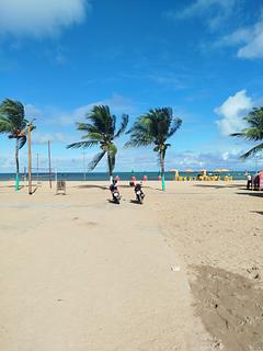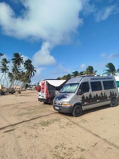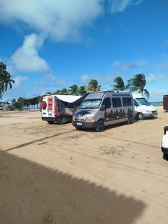 Estacionamento grande em frente a praia. Tem ducha das barracas e tem possibilidade de pegar energia de tiver extensão grande. Na praça ao lado (100 metros) tem ducha e banheiro grátis. Local tranquilo pra passar o dia e a noite. Pega sinal de todas as operadoras do Brasil. Local familiar com comércio perto.
