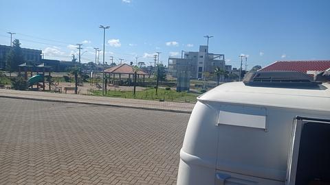 Free Parking monitoring for cams, with water. Market with bathrooms near.