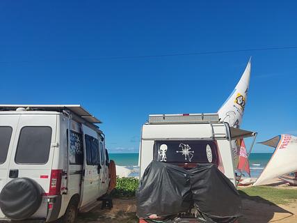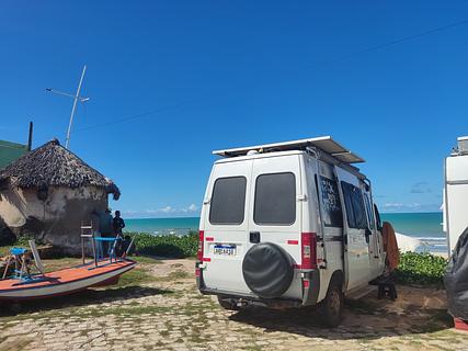 We spent one night at this beachfront location. Busy on weekends. But with a very quiet neighborhood, which even offered us water and energy. On the edge of the beach there are 2 water wells, good for taking salt from the sea, but they are closed at night. Good live and clear internet signal. Close to the center of Majorlandia. -- Passamos uma noite neste lugar de frente com praia. Movimentado aos finais de semana. Mas com vizinhança bem tranquila, que inclusive nos ofereceu água e energia. Na beira da praia tem 2 poços d água, bom pra tirar sal do mar, mas que ficam fechados a noite. Sinal bom internet vivo e claro. Próximo centro de Majorlandia.