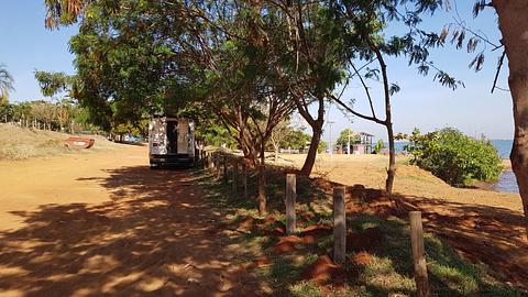 Nice Beach to stay overnight or also at the Parking some 100 m south at the Pier Presidente Epitacio. Down a small dirt road there is a lot of shade from 10 a.m. to sundown. On weekends that might be very crowded. Restaurant is nice with tables on the beach.