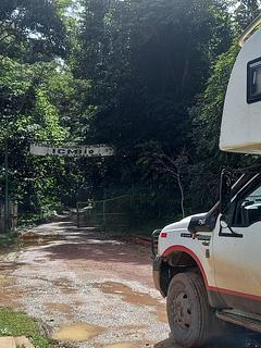 Free entry to the park. After 17km through nice forest you reach a open area where you find a shelter, picknick tables, shades, toilet and old structures of buildings. Nice view of the forest canopy and the river in the distance. On the left starts an interesting intepretive trail (1.6km) through the forest where you can see some impressive trees (50 meters or more) and some examples how rubber is collectet from the kautschuk trees. Unfortunately there is no camping allowed in the park. Visit recommended!