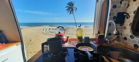 Estacionamento público de frente para o mar, na entrada da praia de Cumbuco. Local espaçoso e tranquilo, ao lado do condomínio Wai Wai. Possui uma torneira e excelente sinal de internet 4G. Sendo uma área pública, pets são bem-vindos sem problemas. Há um quiosque nas proximidades onde podemos obter eletricidade do proprietário. A polícia patrulha frequentemente, pois é um ponto turístico, o que proporciona muita segurança. Fica muito perto do centro da cidade, onde há um supermercado, bares, restaurantes, os mais populares quiosques de praia e outros serviços. Uma área movimentada, mas ainda muito calma para quem busca tranquilidade.
