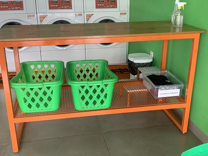Lugar climatizado, boa quantidade de cesto de roupa, preço competitivo, ambiente limpo, circuito de câmera eficiente, geladeira com salgadinho e bebidas mediante pagamento, ótima localização.