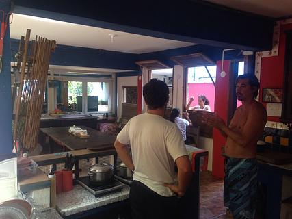 Very friendly Posuda (South African/Brazilian) family welcomes overlanders. Parking is in a closed parking area behind the posada (it's probably enough for 2-3 bigger motorhomes) and they provide electricity, water and wifi. You are welcome to use the shower, toilet, fully equipped kitchen with unlimited coffee, tea, biscuits 24 hrs. The beach is just meters away, town centre is 10-15 mins walk with nice cafes, bars, banks, veg and fish market. Whatsapp. Check to make sure there's space (English-speaking) WA(12)99749-3450 Muy pequeño para camping, pero dos plazas o tres. Muy buen hostal frente a la plaza