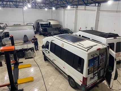 O mecânico responsável é o Tiago, identificou os problemas que eu tinha no meu motorhome. Ele lida com Mercedes Sprinter, Fiat Ducato, Renault Master e outras marcas com motor a Diesel. Muito solícito, gentil, deixou eu usar energia para carregar minhas placas e também abastecer minha caixa d’água. Troquei Correia dentada, bomba de água, óleo, filtro e pastilhas.