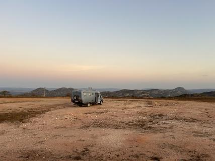 Large flat area, hard gravel. Nice views, great sunset and sunrise. 2 bars cell reception Vivo.