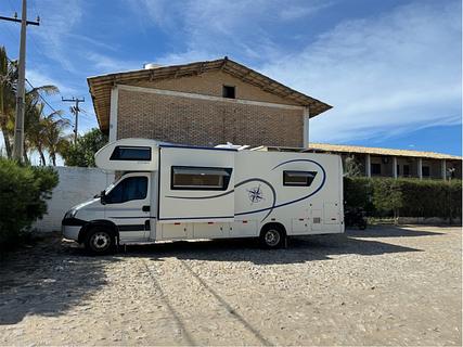Estacionamento no hotel por R$ 50,00 por dia, incluindo energia e água para encher o tanque do RV. Por esse preço, você pode usar a piscina do hotel e pode obter um quarto como apoio para banho ou banheiro, se necessário. Bem na frente da praia, no topo da colina. Há um restaurante no hotel, mas não experimentei. Passeios pela cidade estão disponíveis no local e sem preço.