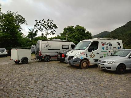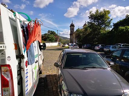 Parking lot next to the church. Level ground - hard to find in this city. Secure - Policia Militar just down the road. There is a Kombi parked next to the church, full of tourist merchandise. It is left unattended overnight! (can't be moved as it has completely flat tyres) Some traffic noise overnight. Walking distance to the centre, but uphill all the way back. If you're lucky you might see tiny marmosets running along the power lines.