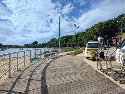 Public municipal parking next to the sports court, opposite a campsite. There is an outlet on one of the posts nearby, you will need an extension of 30 or 40 m. The community here is very friendly, we soon became friends, one of them offered us the bathroom in his cafeteria to use as we wish (bucket bath inside the bathroom). At night the place is illuminated by the sports court's reflectors. Here we experience a bit of local life, it was very good.