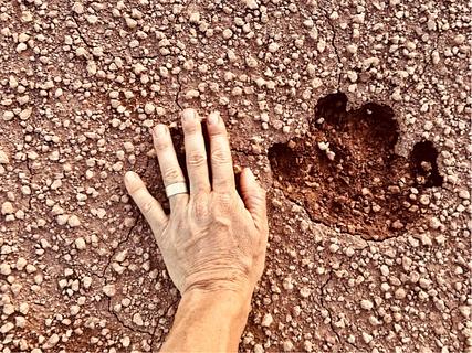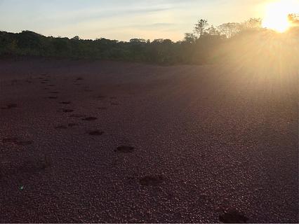 Large patch of red soil next to the street. You can find small trees for some shade and shelter. Still visible from the road, but coming from the South there were no other possibilities. When we arrived here, we saw several large Jaguar prints, so beware. You can also camp on either side of the small stream nearby, but directly next to the road.