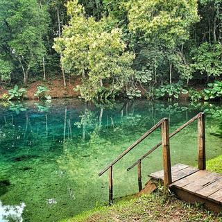 Lugar maravilhoso, um lago cristalino e azul em algumas partes, tudo muito bonito no meio de uma densa floresta, recepção nota 10, pessoas simples e prestativas, lugar voltado para camping e recebe muito bem motorhomes. Lugar agradável, mas é o camping mais caro que já pagamos no Brasil. 100 reais por pessoa. Não tem cozinha como está referenciado no aplicativo. Eles oferecem wifi, banheiros limpos e energia.