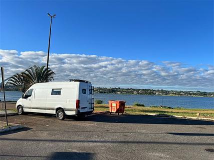 Brasília PUENTE JK El lugar tiene lá mejor vista del puente JK de Brasília... Es una playa de estacionamento para veículos pequenos y medianos Te podes quedar a dormir si tenes un Motorhome o casa rodante, no aí punto de água potable ni energia elétrica, tenes 3 restaurantes, também hay una pequena playita donde também tenes para alquilar planchas y kayak