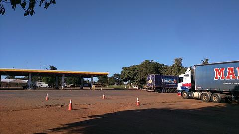 Typical truck stop with huge gravel area on the northern side where you can get well away from truck movements. Still lots of noise from the road. Some good shade trees out of the traffic flow