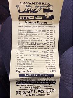 Nice laundry shop. They do the job for you. Not the best opening hours, but ok service. We paid 48 BRL for 6 kg. There’s a picture of the fees