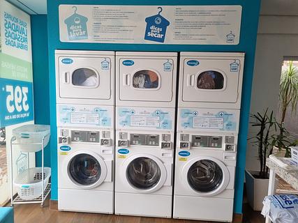 Coin operated washers and dryer, plus service wash available. R$40 a load including detergent.