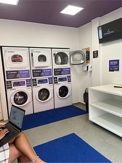 Self-service for washing and drying. 3 machines for washing, 3 for drying. 18 reas per machine, only accepts payment with card.