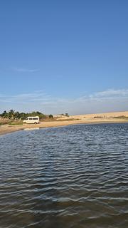Parking area at the foot of the dunes (be careful, in some areas the sand is soft/loose). No facilities, but it is possible to use the water from the lagoon. No shade. Vivo cell phone signal ok. --- Área para estacionamento aos pés das dunas (cuidado, em algumas áreas a areia é fofa/solta). Sem facilidades mas é possível utilizar a água da lagoa. Sem sombra. Sinal da Vivo ok