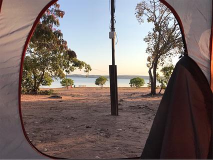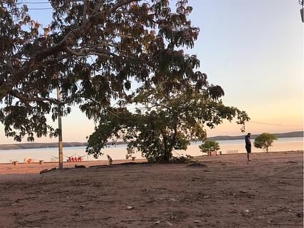 Camping à beira do Lago Manso. Boa estrutura, vista agradável, chuveiros frios. Você não pode trazer sua própria comida/bebidas, deve comprar no restaurante deles.
