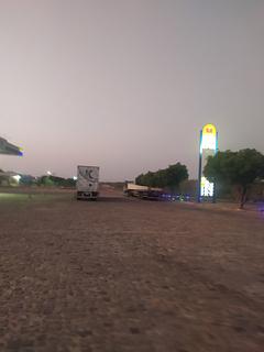 Ample parking space, toilets, shower, snack bar and cheap gasoline and diesel.