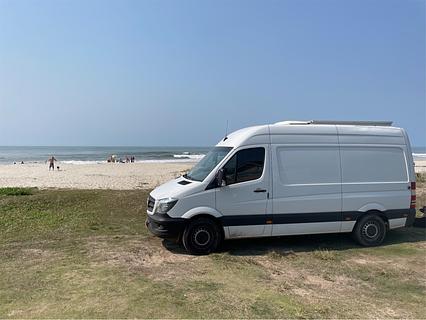 Good place for wild camping on the seafront standing on the sand there is a lawn for parking no facilities... Slept for 2 nights safely! Friendly neighbors!