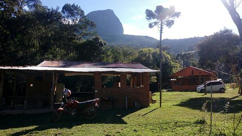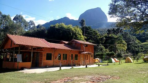 grande área com bastante sombra na base da montanha pico do Papagaio. Você pode caminhar até o topo a partir daqui. Recepção amigável. Banheiros limpos, chuveiro quente e cozinha com fogão e geladeira. R$ 30 por pessoa.