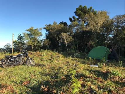 Pista de voo livre em cima de um morro com vista pra cidade. Lindo por e nascer do sol. Passamos a noite e foi muito tranquilo. Apenas as vacas eram nossas vizinhas.