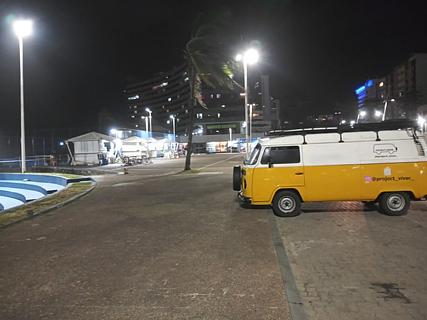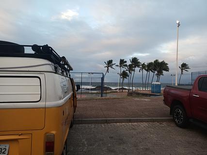 Estacionamento perto da praia de Ondina. Um pouco barulhento por causa da estrada. Mas seguro. Banheiros. Restaurante. Posto de gasolina. ..... Chemical toilets. Zona Azul (paid parking)