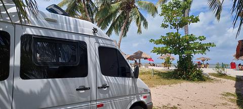 Facing the sea, in a free public parking area, with many coconut trees. No water point or energy but, talking to the people at the hut (only works on weekends) they give energy. We spent some very peaceful nights in 4 motorhomes.