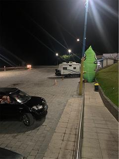 Gas station, small shops and a restaurant. You can park here and sleep. Clean and safe! Snacks 24/7