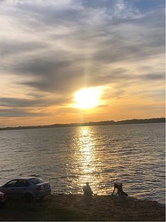 Free parking overlooking the sunset, recommended for fishing.