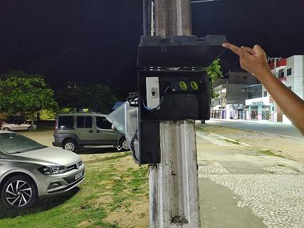 Estacionamento com ponto de energia, bem em frente a energia. Tem um quiosque de serviço de informação