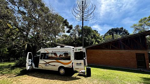 This beautiful park has cabins for rent and many places to camp in both tends and motorhomes. Area with plenty of nature, swimming pools, tables, energy points, grills and some sheep grazing. The amount charged was less than 10 USD (40,00 Reais - Jun2024)