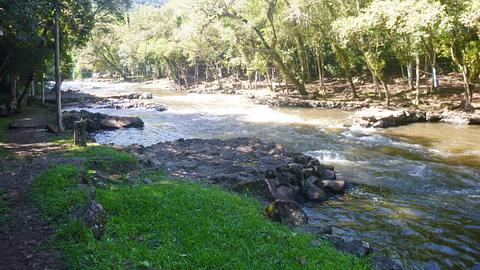 Camping com atrações de aventura, incluindo rafting em águas brancas e paintball. Grande área, banheiros do lado bom, chuveiros quentes. Muito espaço e barato. 15R$ para barraca e moto. Dias extras mais baratos se você reservar mais. Há uma Pousada com restaurante, além de uma loja e lanchonete. Bastante estacionamento. Espaço para veículos grandes. Pontos elétricos estão espalhados. Há um curso de caiaque em águas brancas no rio, mas muitas pessoas nadam com segurança nas partes calmas. Balsas descem de vez em quando na alta temporada. Café da manhã 15R$ no restaurante. Grande área arborizada para churrascos e pendurar uma rede. Telefone: (51) 99837-5605 - (51) 99670-0056