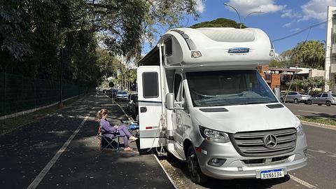 Lugar para passar a noite ao longo da trilha do Parque Ingá. Há uma torneira ao lado do portão de entrada, avise o guarda. Lugar seguro, no domingo a rua está fechada. .... Atualização. Sobre a avenida do lado do parque pudemos passar duas noites sem problemas Estacionamento pelo lado de fora ao redor de todo o parque. A avenida é bem larga e comporta qualquer tamanho de veículo. Local plano com asfalto e um pouco ruidoso durante o dia. Nos finais de semana interditam parte da av para feira de exposições. Melhor chegar fora do horário de fluxo. Na portaria tem vigilância 24h. Internet pega bem.
