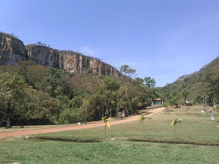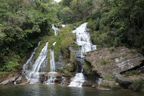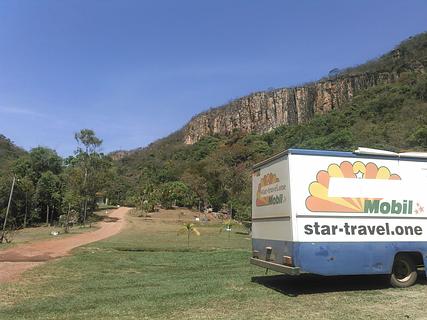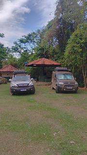 Ecologic campground with 3 large waterfalls (possible to swim in) and a trail between them with really nice views.. Only reachable on dirt road (medium quality, but 4x2 easy possible if dry). prices: paid 40R$ for 2 incl. truck (normal price 35 p.P., 10 R$ p.p. entry for waterfalls get included). Very calm in between chickens, cute dogs, toucans, amazing landscape. Small Eco-restaurant (didn't try). max. height 3,50m (maybe 3,60m).