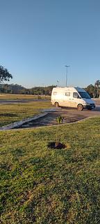 Community Park with very little people during the day but many locals in the evening (walking the dog, exercising, playing), level parking easily possible, also for bigger rigs, toilets on the opposite site of the park in front of the sport fields, they are 24h open, very clean, but bring your own toilet paper, next to the toilets on the right side is a potable water tab, trash bins everywhere, some lights at night but nothing disturbing, residential houses far enough away to be private and comfortable but still not too lonely so it's very safe, tents could camp between the parking and the Forrest, there is even a children's pool for swimming where also grown-ups fit somehow to refresh