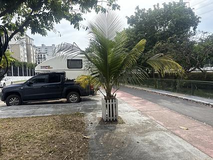Estacionamento público. Após as 22:00, eletricidade disponível, uma tomada na árvore. Lugar tranquilo em frente ao condomínio, ideal para motorhomes e veículos discretos. ..... Passamos uma noite aqui, lugar tranquilo. Parece seguro. Muita gente faz esportes aqui. O ruim é o cheiro da água do rio.
