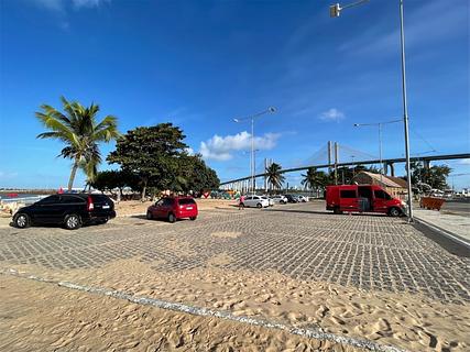 Parking for vans and motorhomes to 45'. Almost under the bridge. ..... Estacionamento para vans e micro- ônibus, 45° , quase em baixo da ponte