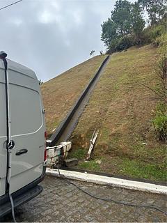 Conexão de água com grande pressão. Na parte de trás do posto de gasolina em direção à loja de caminhões.