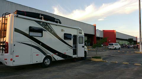 Shopping Center com um grande estacionamento. Ao lado do Atacadão Food Shopping Center.