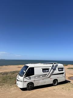 Estacionamos próximo as rochas, dormimos no carro. Lugar sem estrutura alguma. Noite com bastante vento e mosquito. Lugar bem calmo, somente um pescador passou por ali.